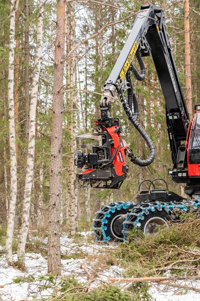 Zu den weiteren Verbesserungen gehören robustere Buchsen mit effektiver Dichtung für die vorderen Entastungsmesser. Die kleinere Variante der Vorschubradmotoren hat jetzt eine Vorschubgeschwindigkeit von 6 m/s und ist damit noch effektiver.